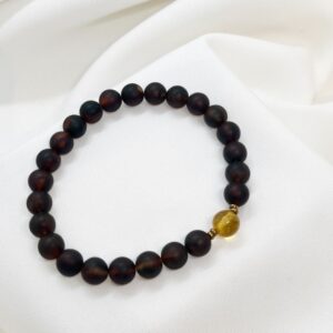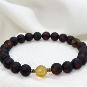 Bransoletka z matowego ciemnego bursztynu z miodowym akcentem