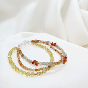 Potrójna bransoletka z bursztynem i agatem ze srebrem 925