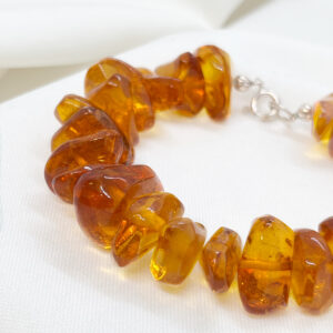 Bransoletka z koniakowego bursztynu o nieregularnych kształtach