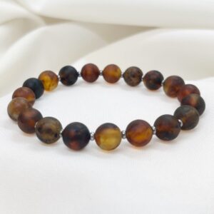 Bransoletka z matowego koniakowego bursztynu i srebra 925