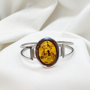 Bransoleta z koniakowym bursztynem w srebrze