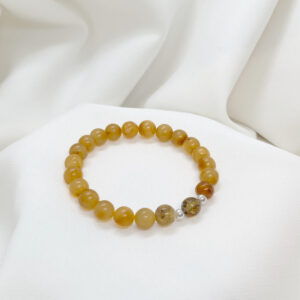 Bransoletka z mlecznego bursztynu z kulkami ze srebra 925
