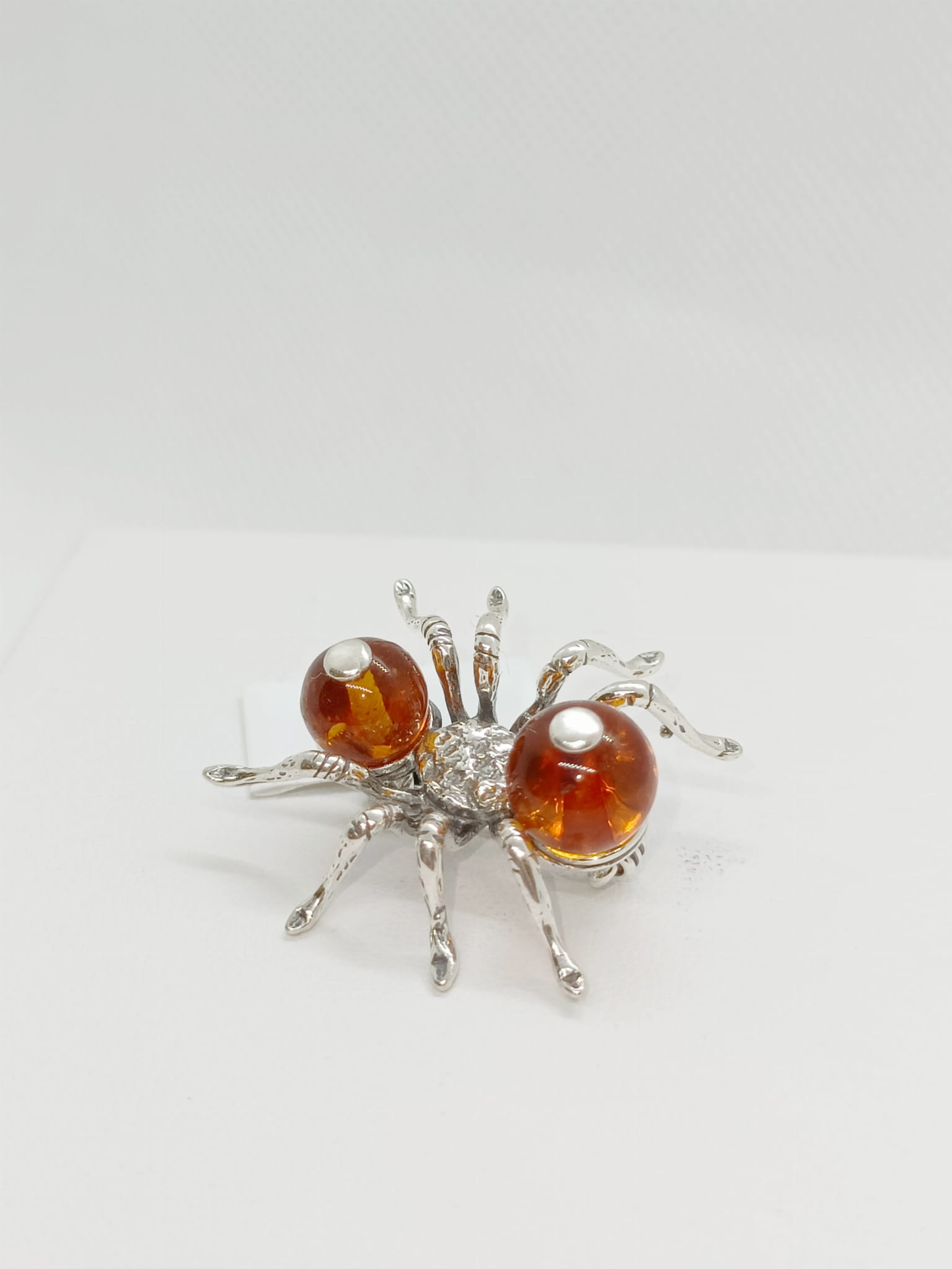 wykonana ze srebra najwyższej jakości, próby 925 i bursztynu bałtyckiego w kolorze koniakowym.