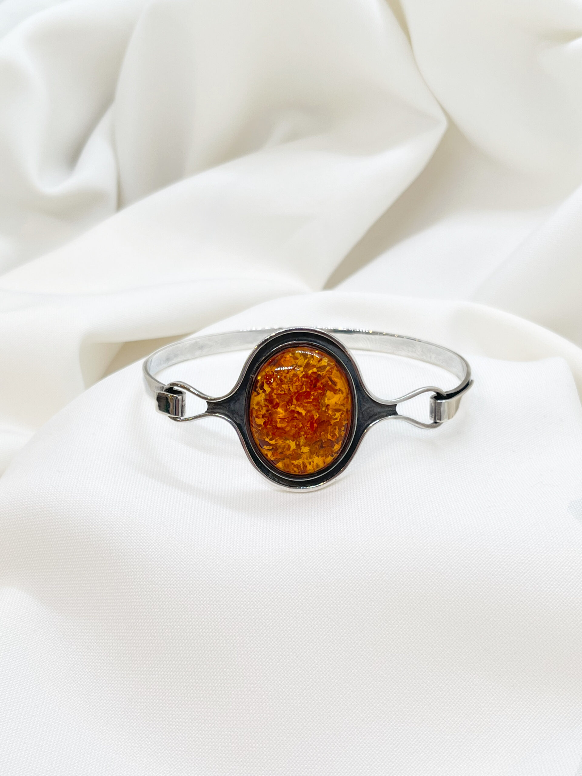 Każdy bursztyn jest inny — niepowtarzalna gra światła i barw czyni tę bransoletę jedyną w swoim rodzaju. To połączenie naturalnego piękna i srebrnej elegancji, idealne dla osób ceniących oryginalność oraz subtelny luksus.